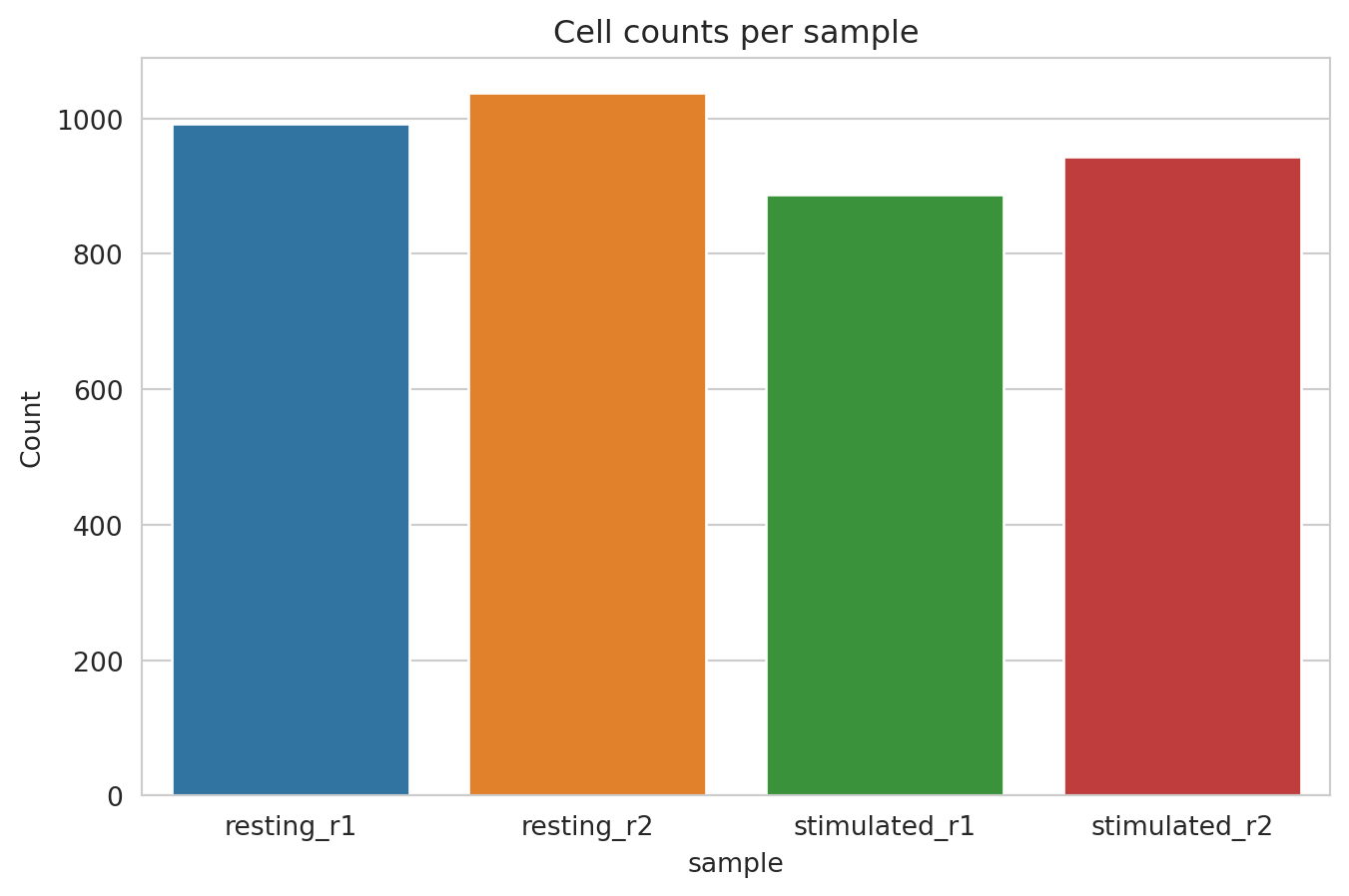 Here, we plot the number of called cells per condition and replicate.