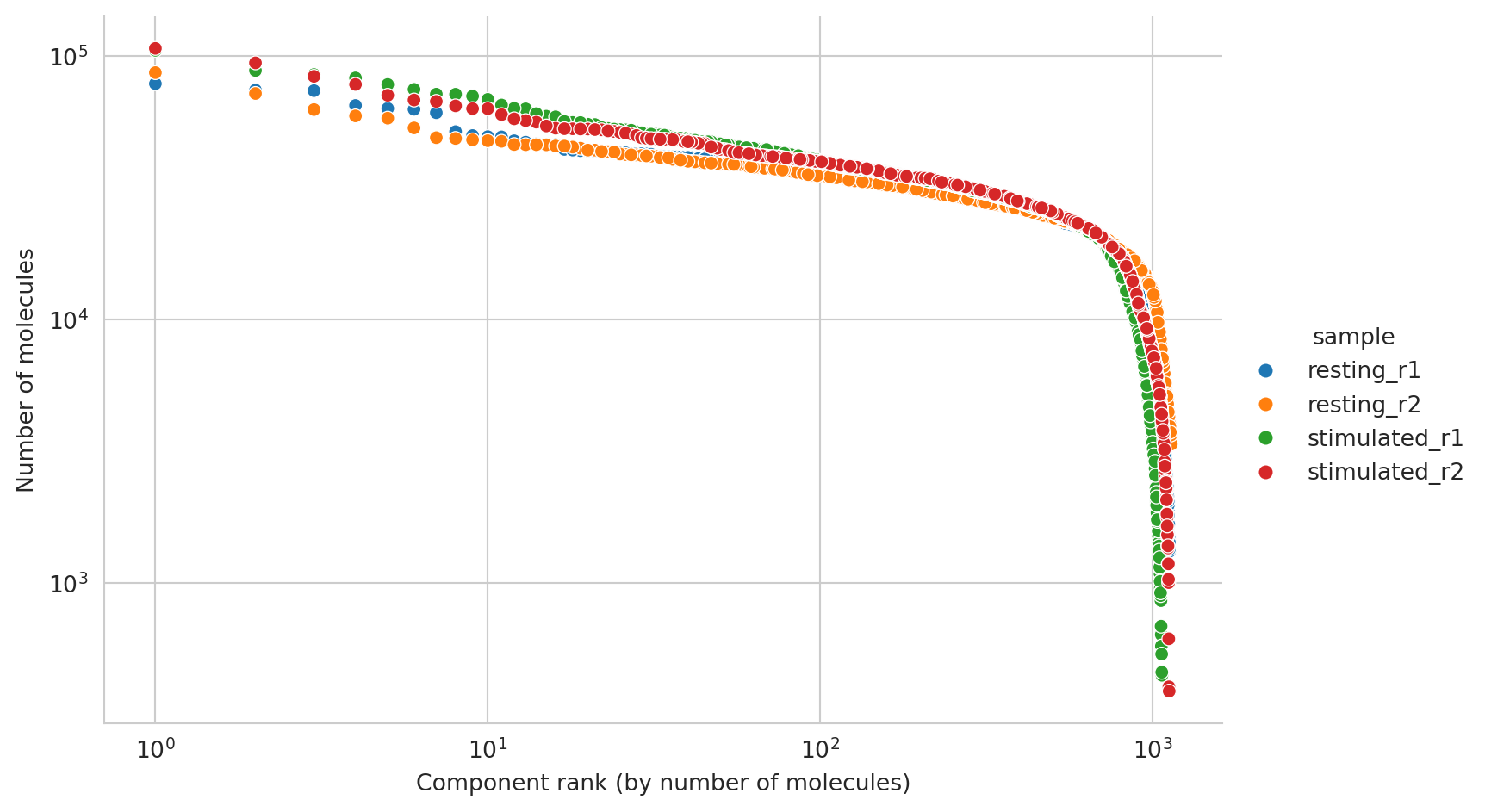 molecule_rank_df["rank"] = molecule_rank_df.groupby(["sample"])["molecules"].rank(