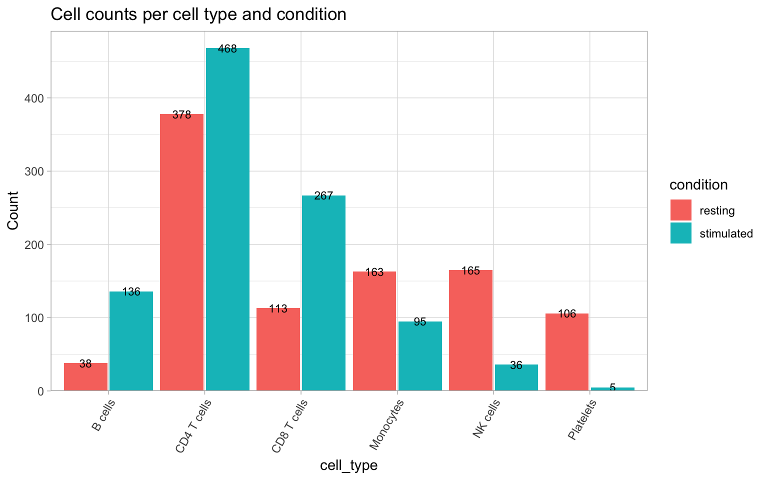 ggtitle("Cell counts per cell type and condition")