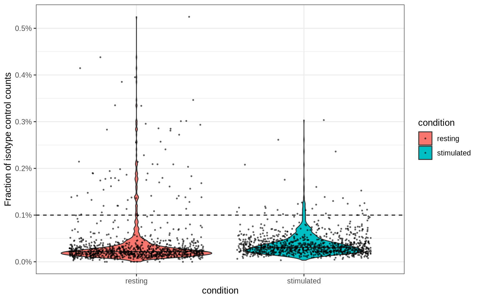 Now let’s apply this cutoff to remove cells with elevated isotype control levels from our dataset: