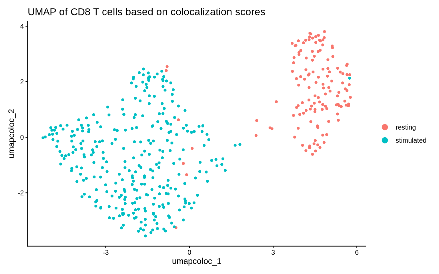 labs(title = "UMAP of CD8 T cells based on colocalization scores")